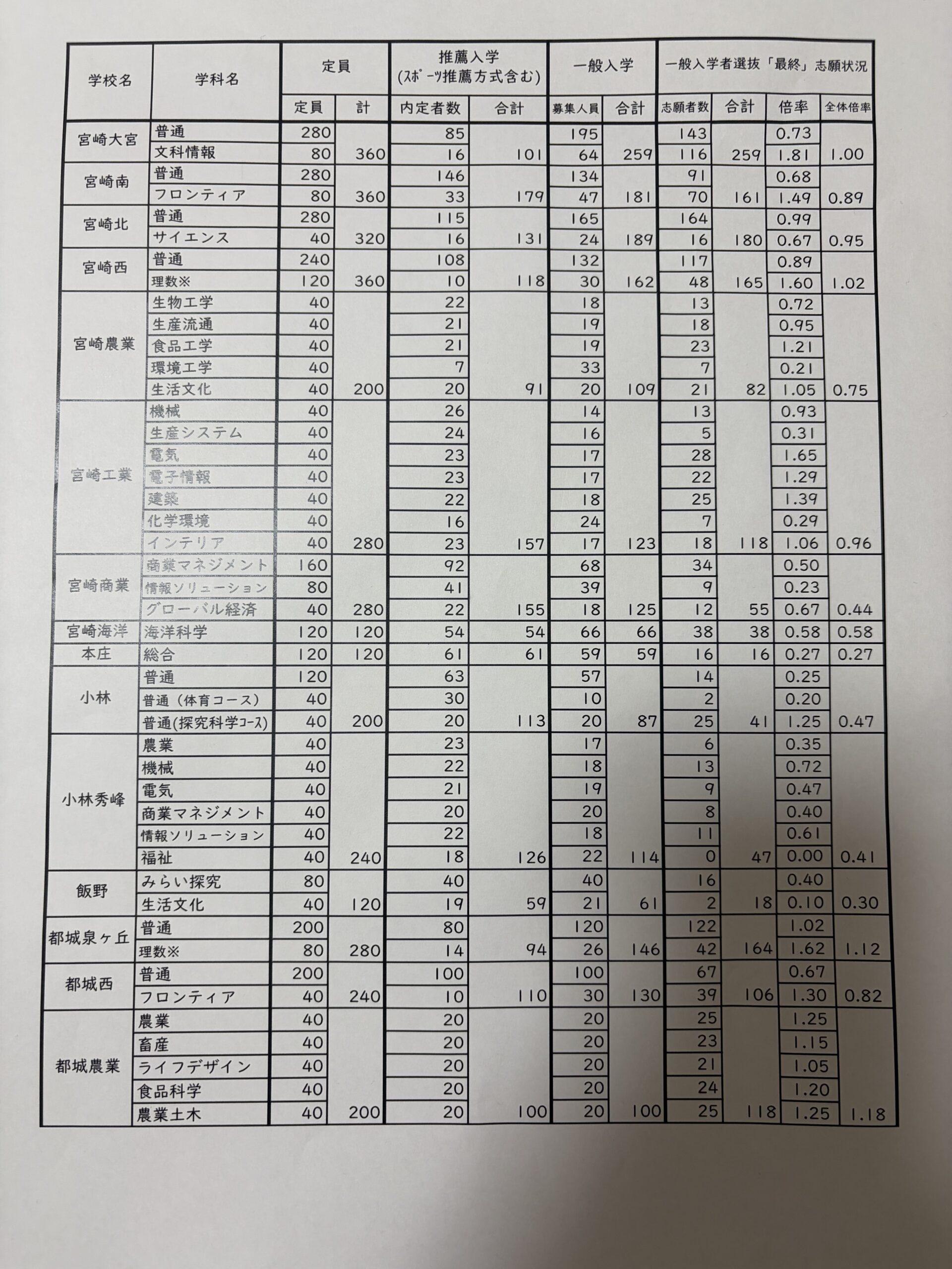 宮崎大宮高校志願倍率1.0倍の衝撃??